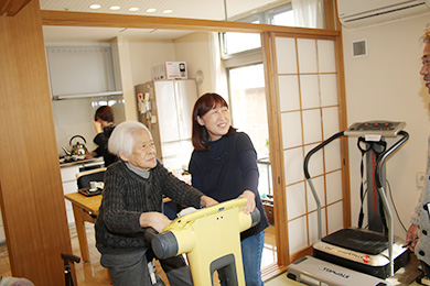 ここは家庭的です。デイサービスは利用者さんがお客さんっぽい感じになりますが、ここは家族のような感覚での付き合いに近いと思います。ここの施設が家だからかもしれませんね。新しい施設も良いですが、普通の民家なのでまんま家の雰囲気です。他の施設よりは、みんなの顔は柔らかい気がします。ある1日のスケジュール