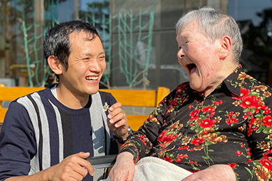 10年勤務していますが、認知の利用者さんが職員の名前を覚えてくれるのがとても嬉しいです。それを聞くと頑張ろうと思います。利用者さんは人生の大先輩なので、私が生まれる前のことを教えてくれます。またその話が楽しくて…。
